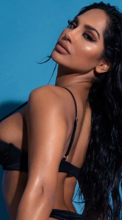 Flaunt your curves with a touch of sparkle in this sexy exclusive bikini top featuring triangle cups with underwire, a stretchy ribbed fabric with metallic lurex accents, adjustable spaghetti straps, and a hook back closure.